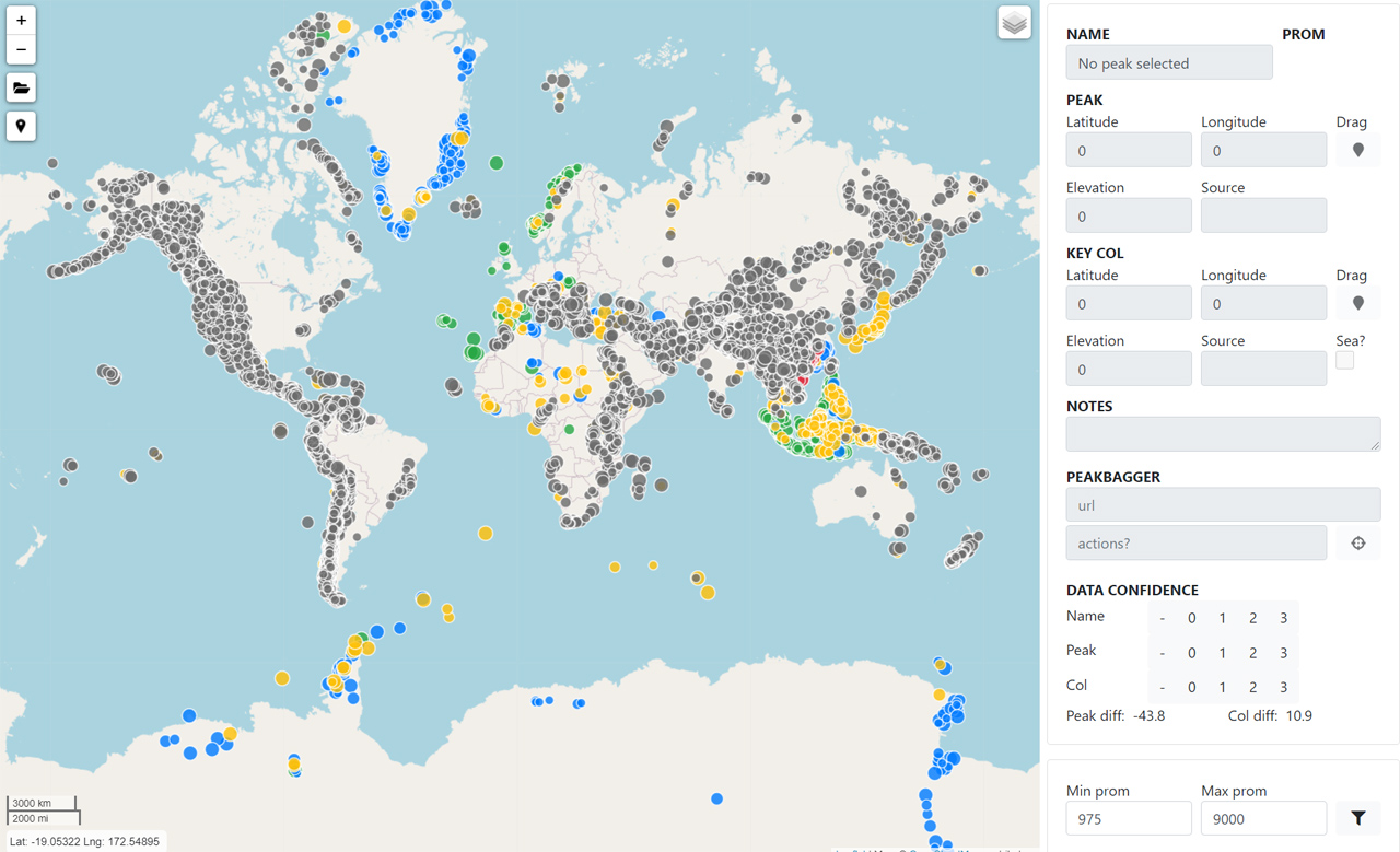 Using as a starting point the automatic analysis of all the world mountains prominence done by Andrew Kirmse in 2017, a group of enthusiastic prominence-driven baggers started in 2020 a manual check against local maps to list all the Ribus in the world. I created a web-app as a tool to facilitate cooperation between the different collaborators, adding also some useful functionalities, and to serve also as a public display of our progress. The final list has been published by Dan Quinn in a book including additional details and stories, and I participated in one of the chapters.